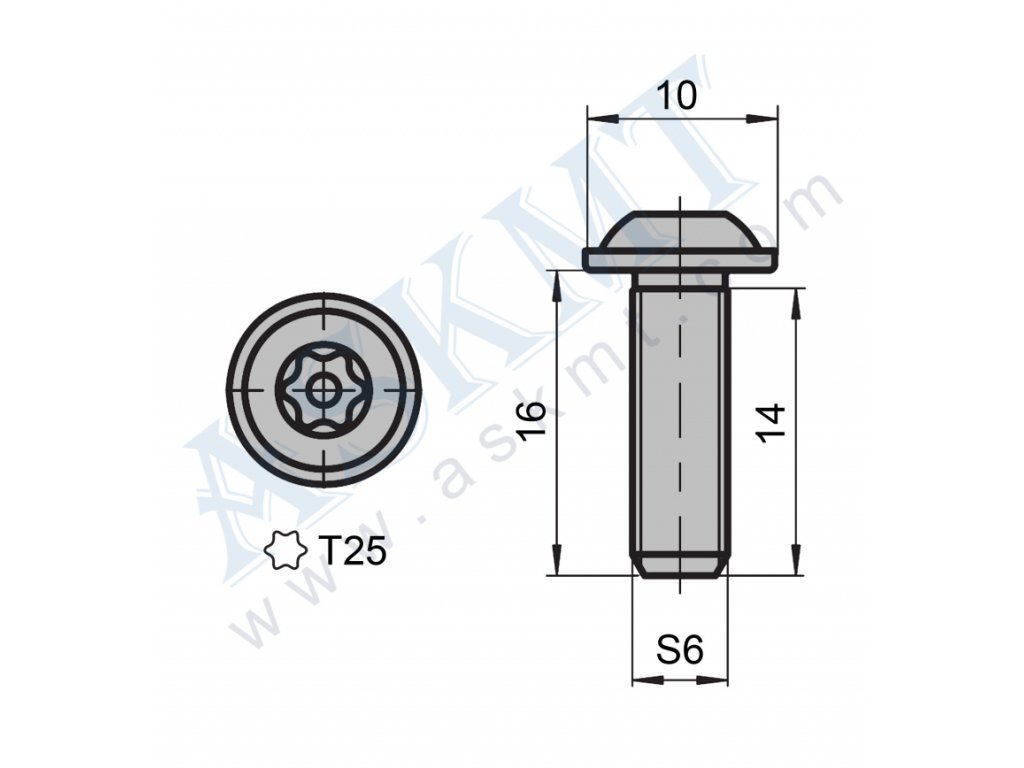 Centrální šroub S6x16-TX25 (samořezný), Zn., BR-6