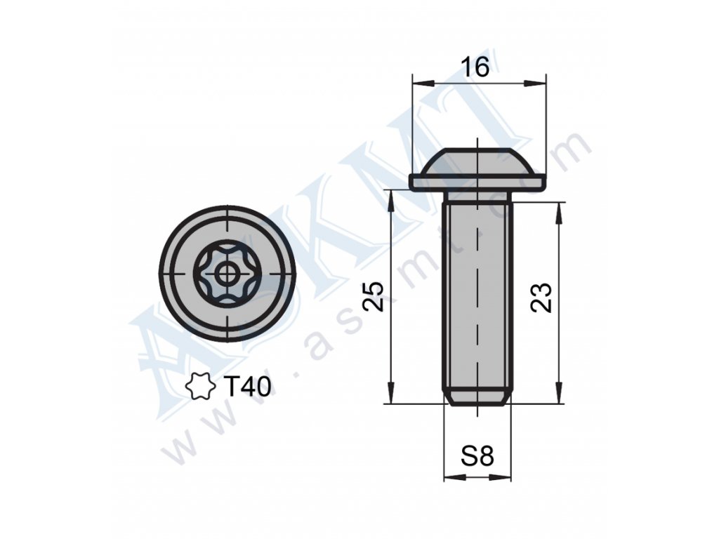 Centrální šroub S8x25-TX40 (samořezný), Zn., BR-8