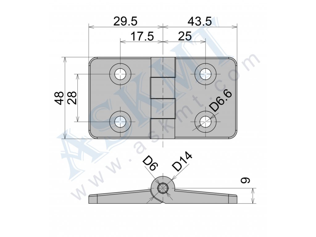 450 400 029 - Kloubový závěs 30x45 PA, bez up. sady M6 DIN 7991