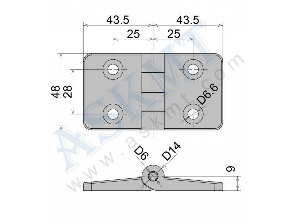 Kloubový závěs 45x45 PA, bez up. sady M6 DIN 7991
