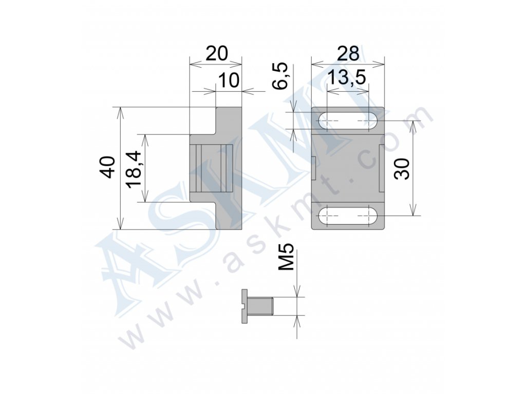 450 400 039 - Magnetický úchyt dveří 40x28x20 mm