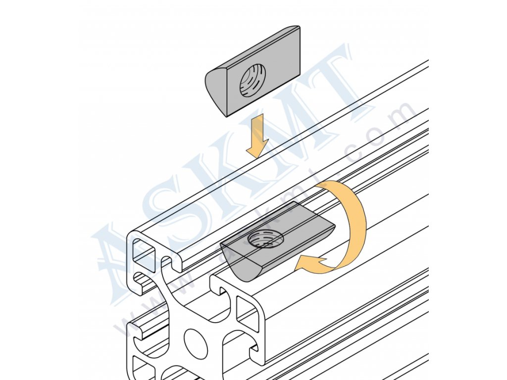- v současnosti doporučujeme z důvodu snadnější montáže použít raději standardní sklopné matice do drážky, které již mají vymezení pro „usazení v drážce profilu“, viz. Matice do drážky M8 sklopná s pružinou - N 8.