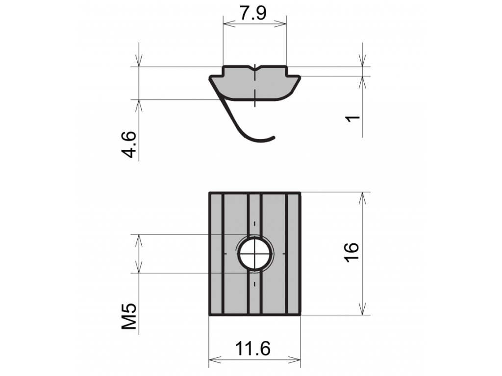 - pro hliníkové profily stavebnicového systému 45 s šířkou drážky 8 mm, závit M5