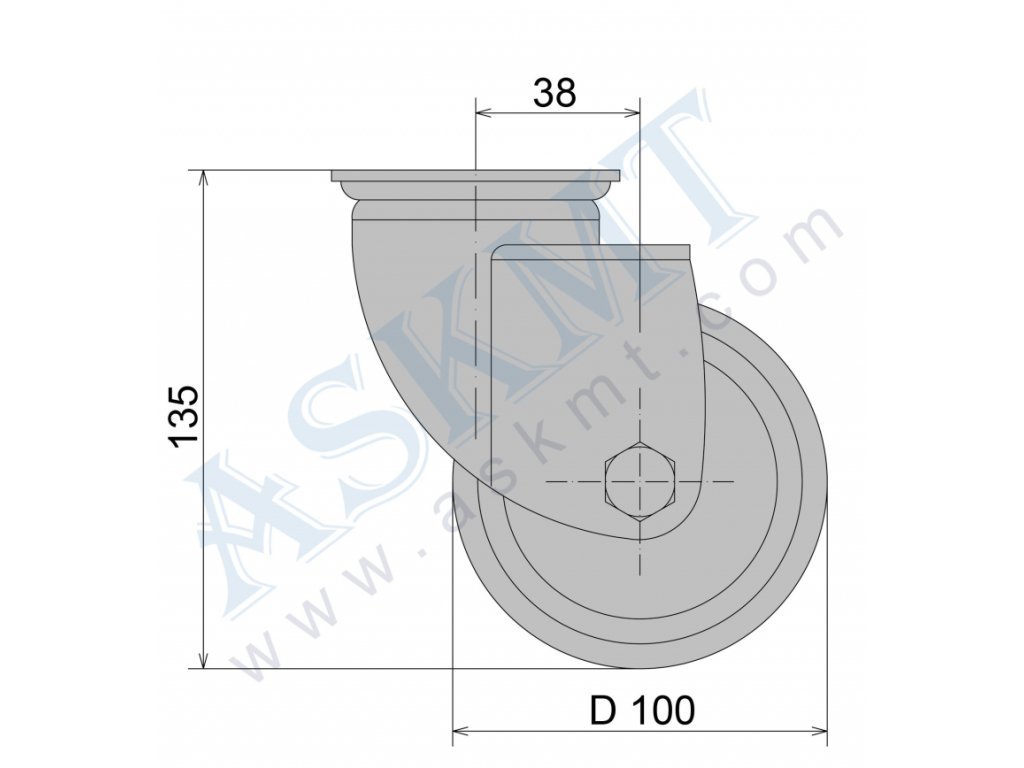 Pojezdové kolo D100 otočné bez brzdy, mont. deska 67x77 mm, 4xM8 - ESD