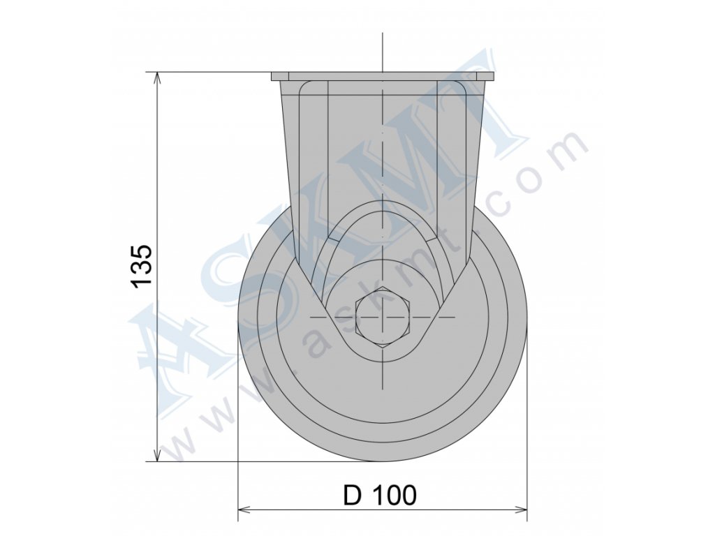 300 100 039 - Pojezdové kolo D100 pevné bez brzdy, mont. deska 67x77 mm, 4xM8