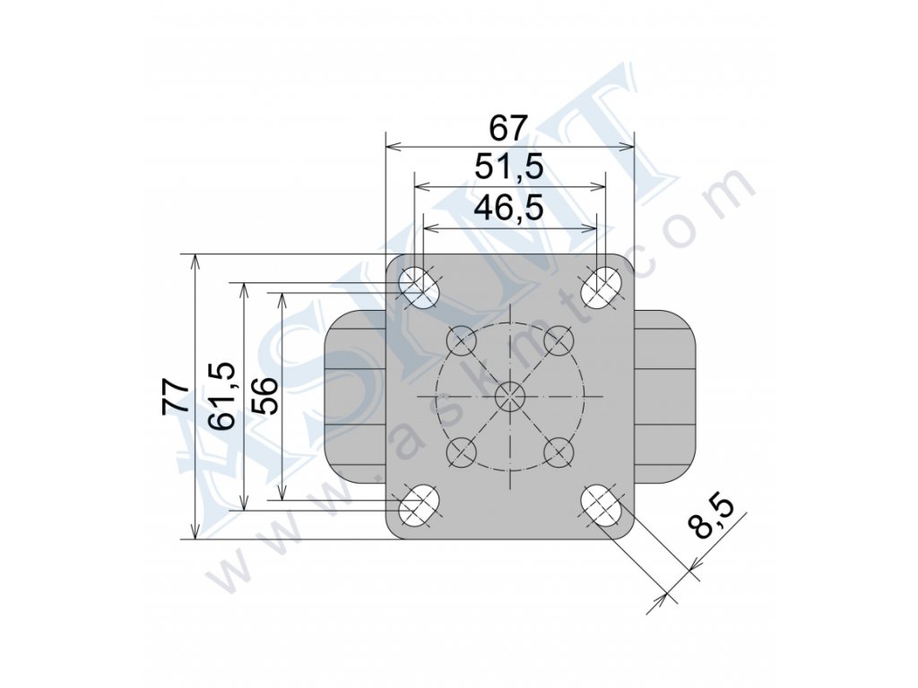 Pojezdové kolo D100 pevné bez brzdy, mont. deska 67x77 mm, 4xM8