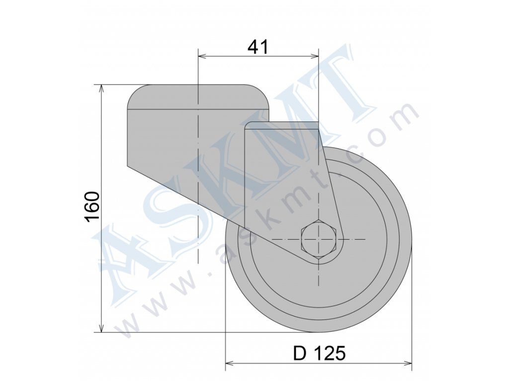 Pojezdové kolo D125 otočné bez brzdy, mont. otvor D 11 mm