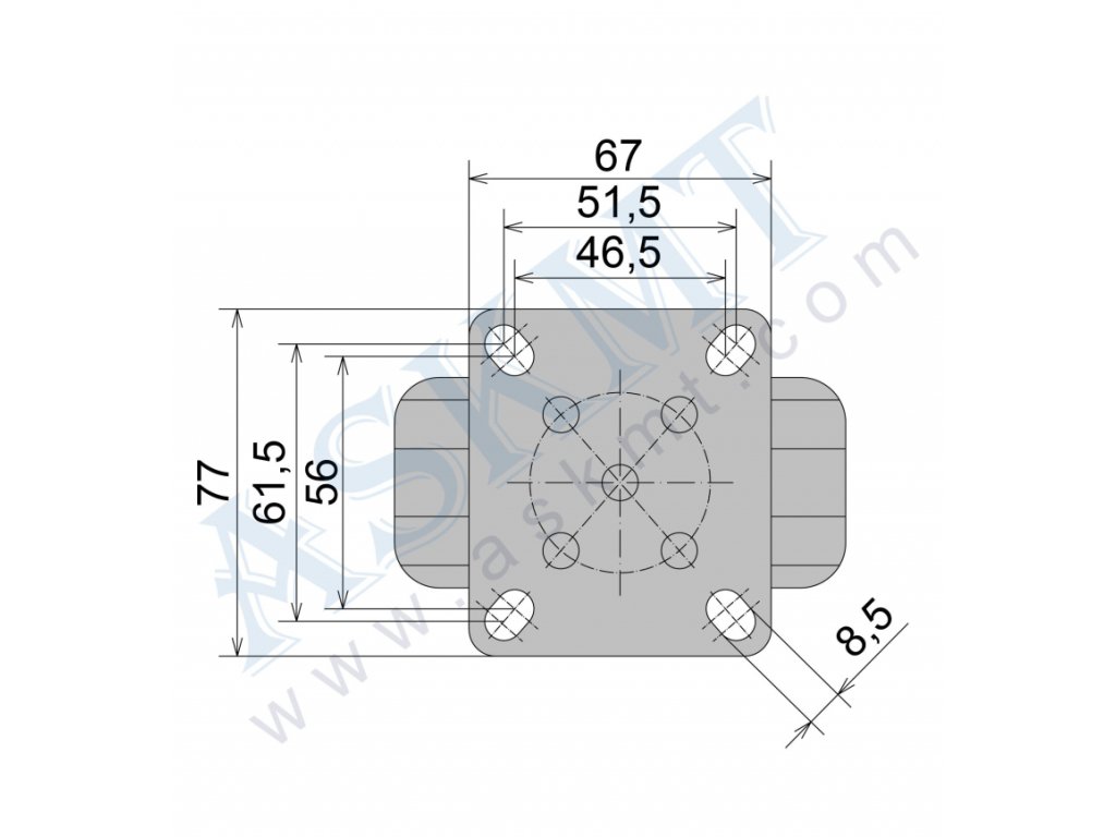 Pojezdové kolo D125 pevné bez brzdy, mont. deska 67x77 mm, 4xM8