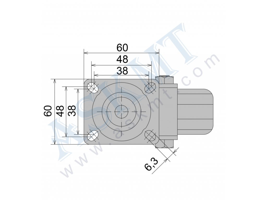 300 100 028 - Pojezdové kolo D75 otočné bez brzdy, mont. deska 60x60 mm, 4xM6 - ESD