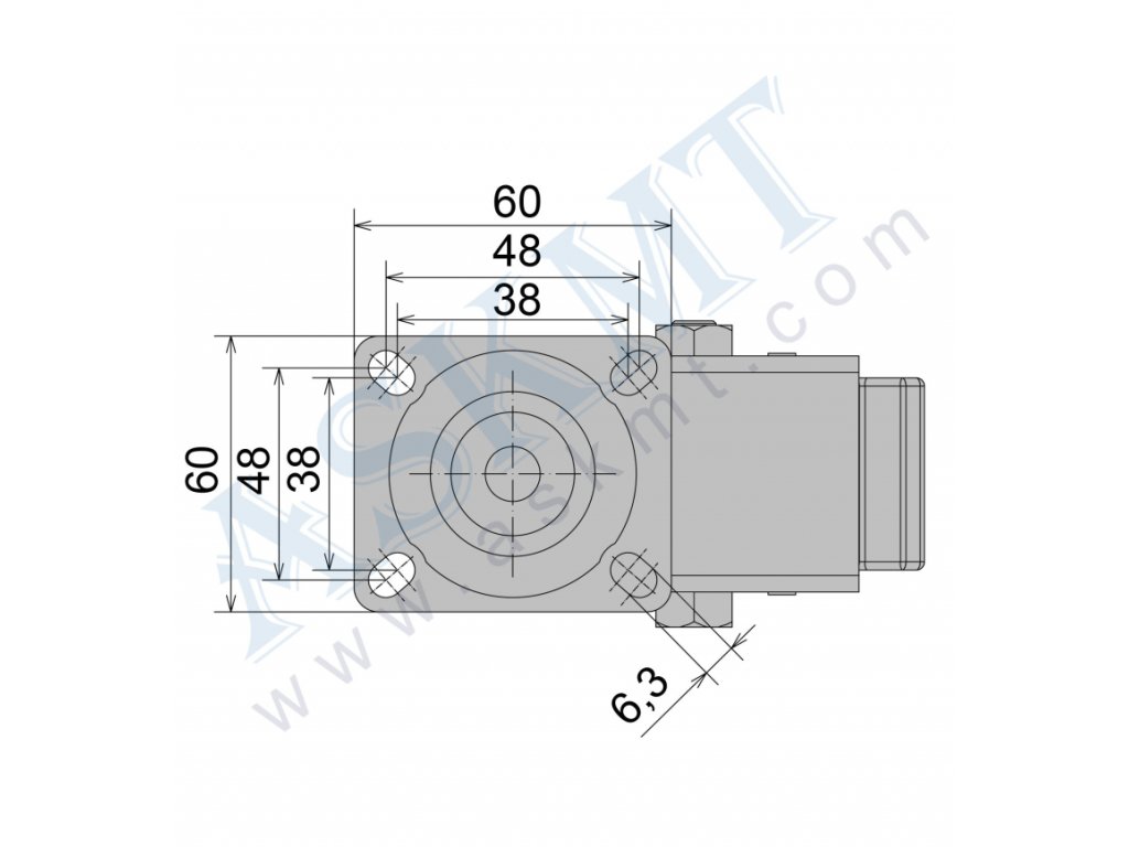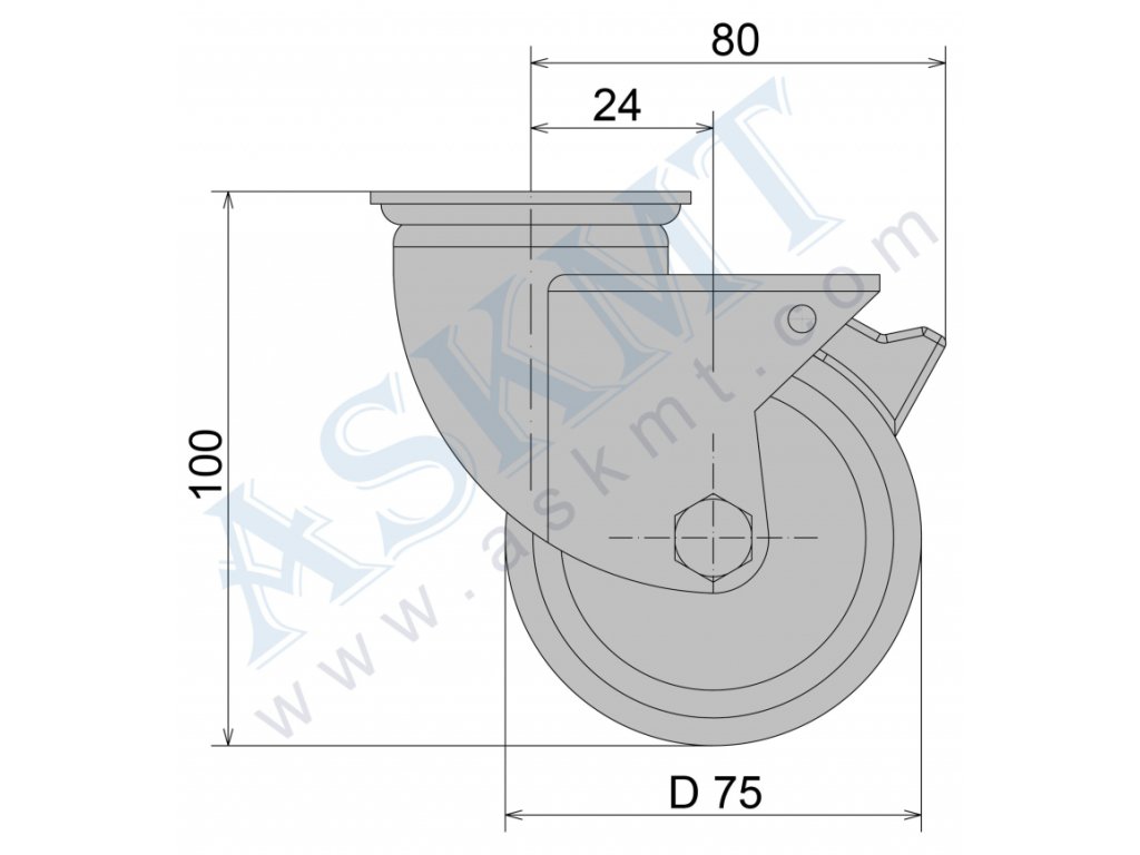 300 100 026 - Pojezdové kolo D75 otočné s brzdou, mont. deska 60x60 mm, 4xM6 - ESD