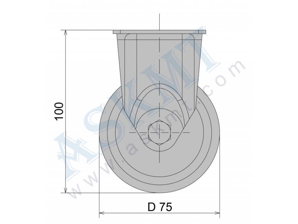 300 100 037 - Pojezdové kolo D75 pevné bez brzdy, mont. deska 67x60 mm, 4xM6