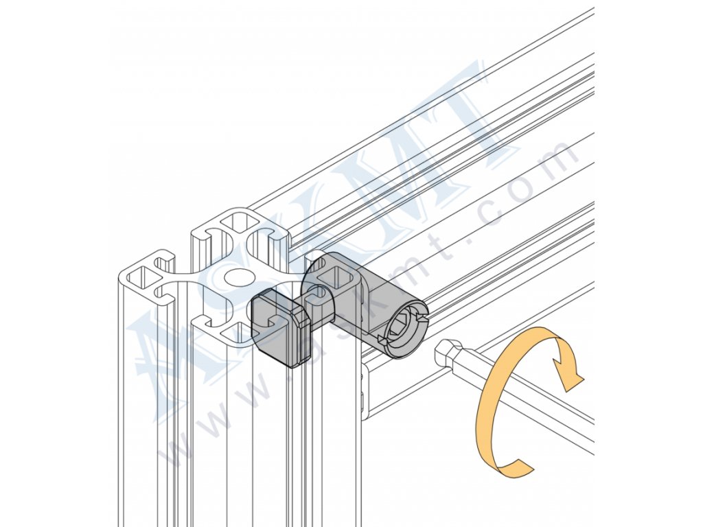 - vytváření pevných, kolmých (pravoúhlých) spojů s možností dodatečného posunutí montovaného profilu - smontované profily lze po povolení šroubu libovolně posunovat podél drážky profilu