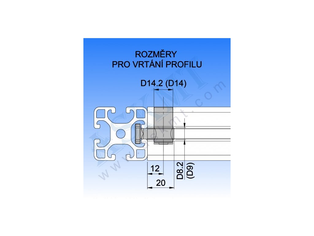- předvrtání středového otvoru profilu do hloubky 20 mm průměrem vrtáku D8,2 (D9)