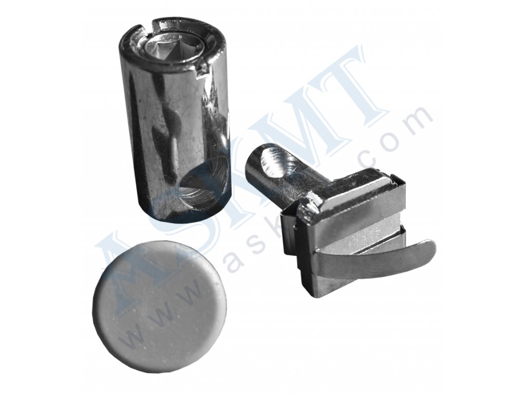 - materiál: pozinkovaná ocel (upínací čep, závitová vložka, stavěcí šroub), nerezová ocel (pružinový prvek), plast PP (krycí víčko – šedá barva RAL 7042)