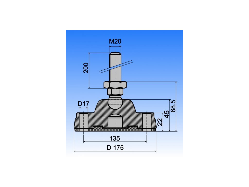 200 100 127 - Stavitelná kloubová noha D 175 M20x200 s kot. 2xD17,0 - PA, nerez