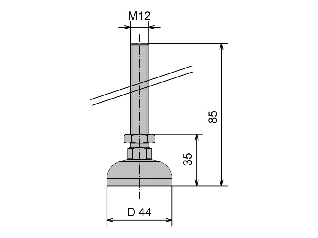 200 100 052 - Stavitelná noha D 44 M12x85 - pozinkovaná ocel - ESD