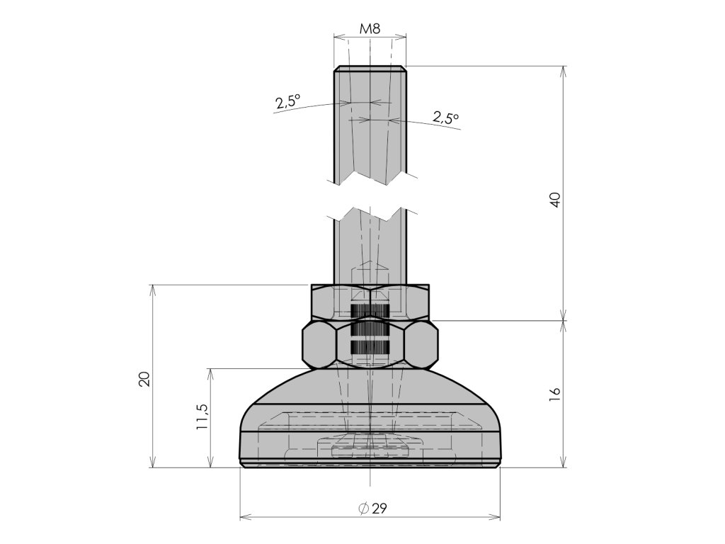 Stavitelná noha Ekonomik D 30 M8x40 - PA, nerez