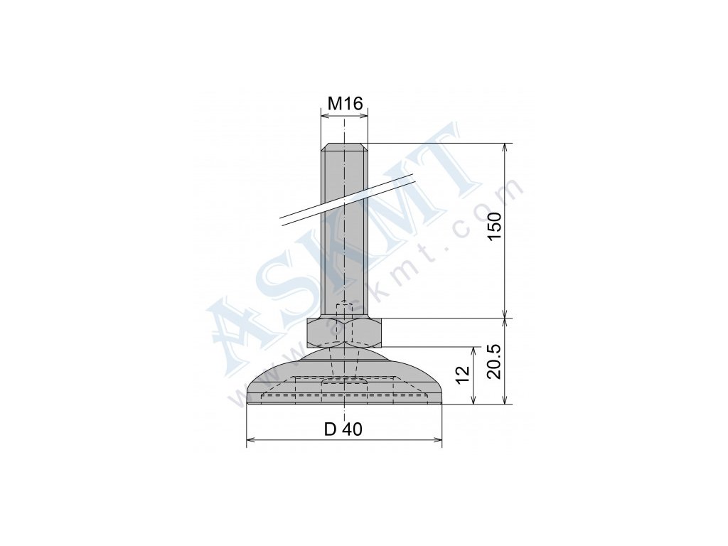Průměr talířku: D 40 mm | Velikost závitu: M16 | Délka závitu: 150 mm.