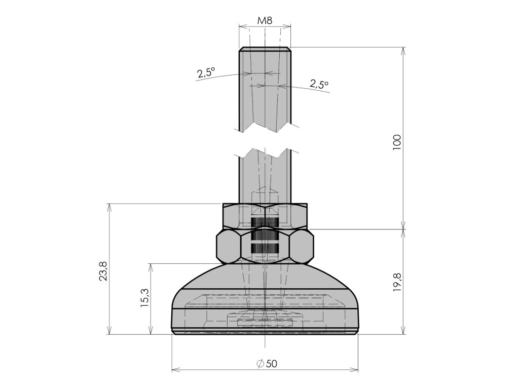 Stavitelná noha Ekonomik D 50 M8x100 - PA, nerez