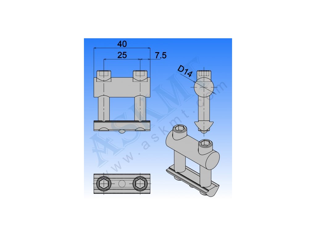- pro hliníkové profily stavebnicového systému 40 s šířkou drážky 8 mm (lehké i těžké varianty)