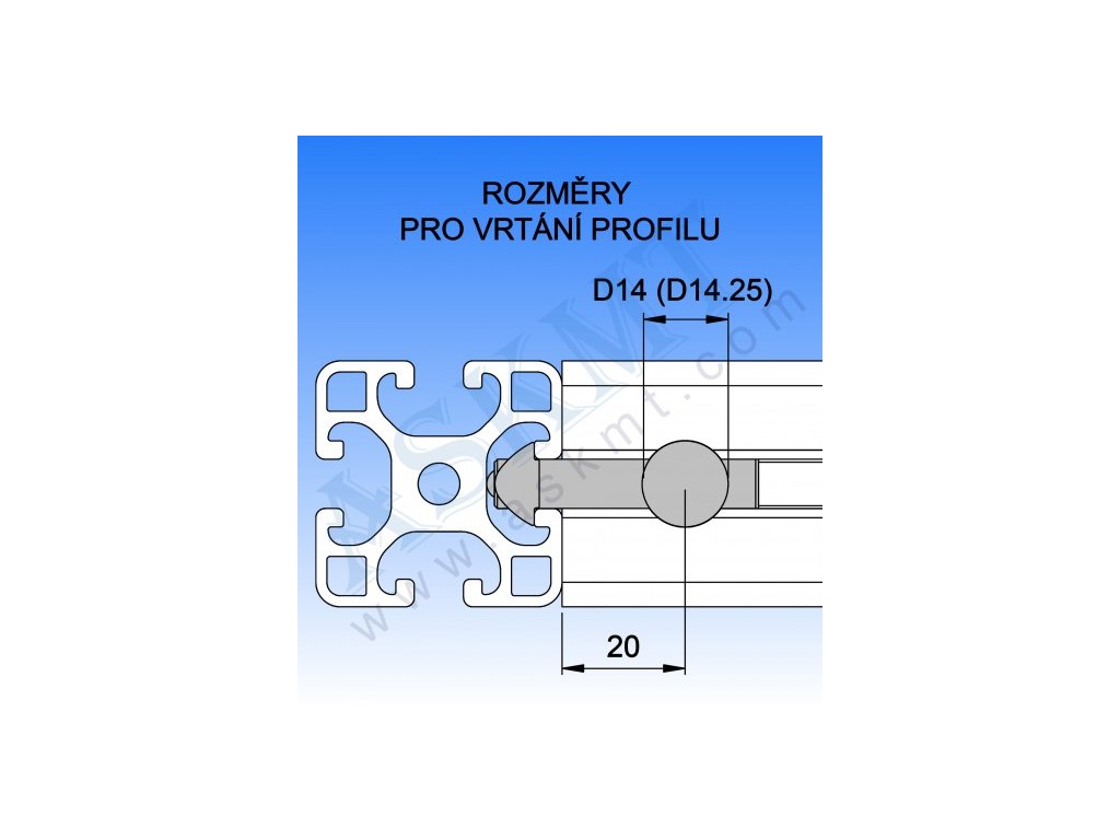 - předvrtání otvoru D14,25 pro příčník, pro montáž (utažení) použít IMBUS SW6 s kuličkou