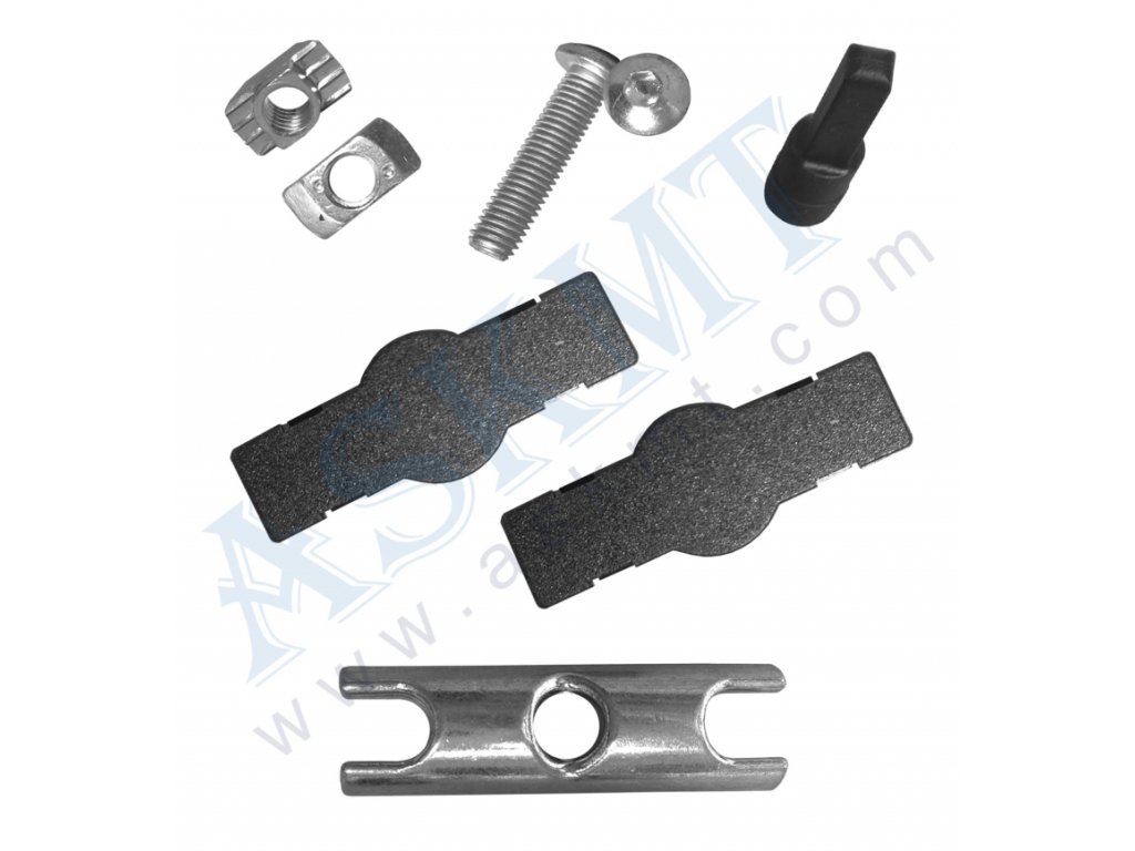 - materiál: základní prvek a šrouby - pozinkovaná ocel; středící šroub a krytky – černý plast - PA, vyztužený skleněnými vlákny