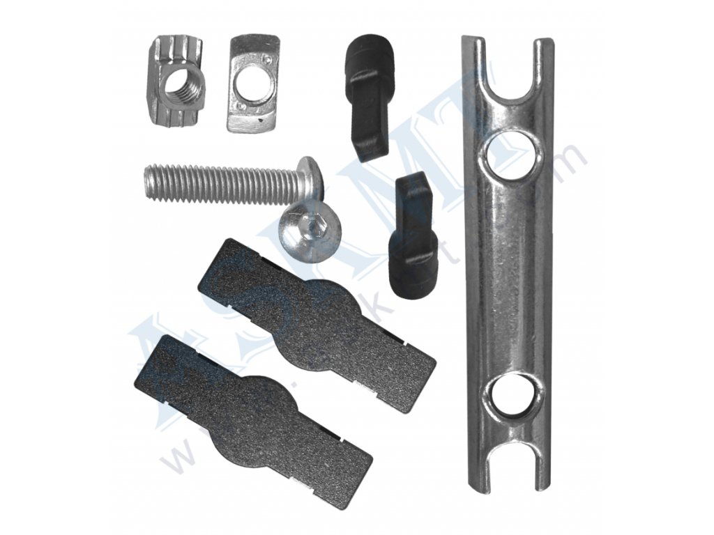 - materiál: základní prvek a šrouby - pozinkovaná ocel; středící šroub a krytky – černý plast - PA, vyztužený skleněnými vlákny