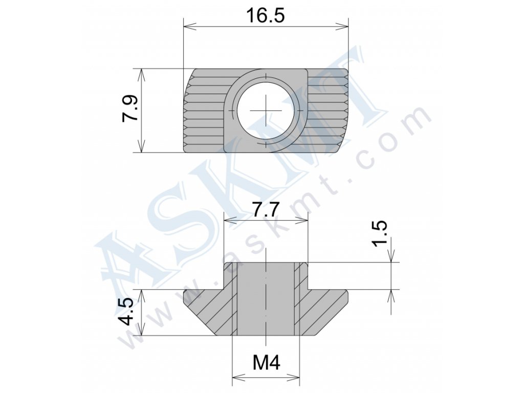 - pro hliníkové profily stavebnicového systému 45 s šířkou drážky 8 mm, závit M4