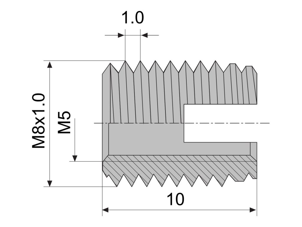 Vnější závit je samořezný M8x1,0 (metrický, nestandardní stoupání závitu).