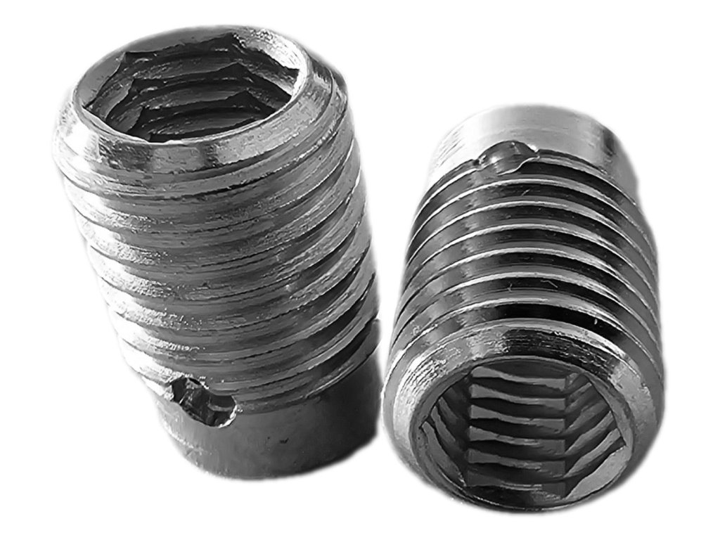Poznámka: Je třeba zamezit jakémukoliv vzpříčení mezi závitovou vložkou a konečným šroubem, který společně s ní bude tvořit výsledný spoj. To znamená, že hlava šroubu, nebo případná podložka by se neměla opírat o závitovou vložku a šroub by se neměl v závitové vložce, jakkoliv křížit. U stavěcích šroubů se nám válcová plocha bez závitu nesmí dotýkat (opírat) o tělo závitové vložky.